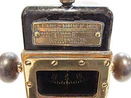 3.14/5.46 U.S. NAVY CLINOMETER. Authentic World War II fighting ship's pilot house inclinometer made for the Navy by the John L. Chaney Instrument Company. The face of the Bakelite body is engraved: CLINOMETER