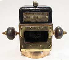 3.69 EARLY AMERICAN TAFFRAIL LOG. Genuine 19th century ship’s taffrail log set made by the noted American nautical instrument makers “NEGUS PATENT LOG” as denoted on the register dial and stamped “NEGUS” on the spinner. This handsome set is totally complete with the register, its braided attachment line, lead sinker, the very long cotton line and the spinner (also known as the “fish”). Also included, but not shown on the accompanying literature, is a second heavy sinker for use in heavy seas. The petite brass-cased dial of this precision instrument is hard-fired porcelain with two indicator dials. The larger dial on the periphery is calibrated in nautical miles 0 - 50. The subsidiary dial is marked in “TENTHS” of a mile. The body of the register is solid brass with a pivoting yoke on one end secured to the vessel. The bottom has a thick solid brass rotating brass governor. To it is attached the cotton long line leading to the fish. The attachment is warped in a seamanlike manner. All components, including the line are in excellent original condition, showing actual careful use. Of special interest regarding value and desirability is the fact that this offering comes complete with its rarely found original box and instructions. The unprotected cardboard box, usually deteriorated during normal use in the harsh marine environment, is still present here! It has the decorative label reading “NEGUS PATENT LOG” with an image of the set. In addition, the original VERY fragile instructions, although incomplete, are preserved within a plastic sleeve. 10 inches long by 4 inches high and 4 inches wide. A truly remarkable nautical survivor of American maritime history well over 100 years old! Now offered at an unheard of reduced price to sell in these inflationary times! How much did dinner out cost? How much is gold? WAS $595 NOW! 295 |