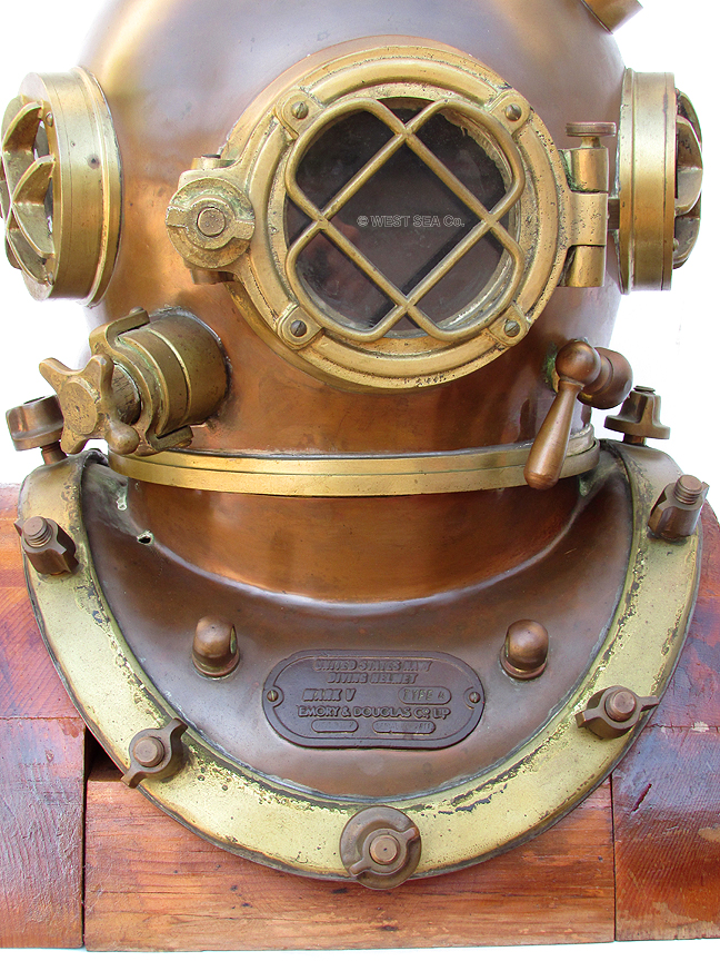 10.63 U.S NAVY MARK V. This is it! The ultimate! Offered here is the very sought after, and by far most collected hard hat diving helmet ever -- an authentic World War II era U.S. Navy Mark V. The maker’s breastplate tag is of brass cast in high relief reading: