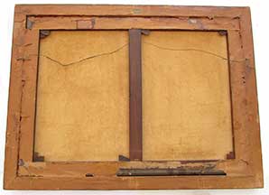 1.29 MINIATURE PORTRAIT ON IVORY. Absolutely exquisite 18th century portrait miniature painting of a very lovely young woman dressed in her finery in a very suggestive portrait for its time. This detailed rendering features a beautifully detailed oval portrait executed in the most detailed manner. The subtle features of her face, hair and drapery are of the highest order adding to the realism of this form of lifelike portrayal of the elite, who could afford it, prior to the advent of photography in the 1830's. The image is signed lower right "Server," possibly French. It is housed under convex beveled glass in its ornate gilded oval frame measuring 2 ½ by 3 1/8 inches. The top back is equipped with a small pivoting suspension ring for hanging. A tremendous bargain! Was $895 NOW! 295 |