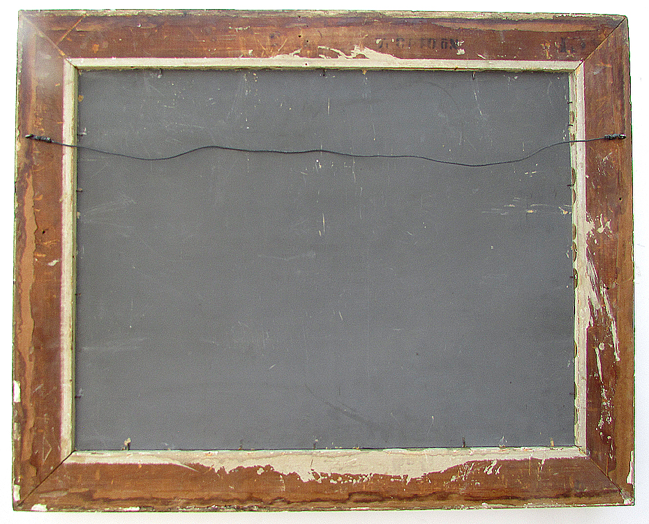 1.77 SHIP’s PORTRAIT. Solon Francis Montecello Badger, American (1873-1919), oil on canvas, the 3-masted schooner Isabel B. Wiley sailing past Portland Head light, Cape Elizabeth, Maine. Signed and dated lower left “S.F.M. BADGER 12,” and inverso boldly signed “S.F.M. Badger Charleston Mass. 1912.” This classic broadside ship’s portrait depicts the lovely vessel on her port beam under full sail heading south backed by rocky headlands and a lighthouse in the distance. Five crewmen are depicted on deck, including the helmsman and the Captain on the poop pointing the way. The ship is clearly identified in three places: on the port bow, the port quarter, and on the huge name pennant flown from the spanker mast. She flies the house flag of Drake & Son (a “D” within a white star) from the mainmast, and the Union Jack from the foremast. The American ensign flies from the spanker boom. The detail that Badger lavished on this painting is simply astounding! It literally bears scrutiny under magnification. The crispness of lines in close proximity defies description. Seeing is believing. Deck detail, rigging and sails are all depicted in what quite frankly could be described as “unrealistic detail.” 22 by 36 inches sight mounted on its original stretcher. Housed in a period fancy gessoed from marked “Made In U.S.A.” measuring 26 ¼ by 40 ¼ inches overall. This painting is in absolutely untouched original condition front and back. Close inspection under UV light shows no inpainting, no losses and no damage. In short this painting is in the same condition left Mr. Badger’s easel 108 years ago! A more pristine original example is not to be found. Price Request The Isabel B. Wiley was a wooden hulled 3-masted schooner built by the New England Shipbuilding Company, Bath, Maine in 1906. She was 160 feet long and displaced 779 tons, under the ownership of J.B. Drake & Son, Bath, Maine. Ownership was transferred to the Atlas Shipping Company of Philadelphia in the teens. |