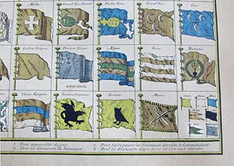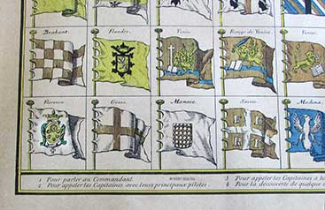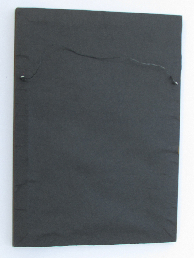 1.73 EARLY 18th CENTURY ETCHING. Original, beautifully hand-colored etching by Francois Halma, dating circa 1706. It features a golden medallion depicting the Emperor Constantine flanked by two admiring puti. On either side are a woman in Roman dress and a helmeted warier with plumage and a spear. They are on either side of a grand battle scene entitled “IN HOC SIGNOVINCES.” Below are some thick bound volumes and a cartouche of a morbid figure. This images no doubt have some symbolic significance. At the lower left is the faint image appearing to be a conjoined “ID.” This etching is on early rag paper and bears the telltale plate mark on its edges. It measures 3 ½ x 5 inches sight. On the back is the certificate of authentication by ANTIUQUARIA SANT ANGELO of Rome, Italy. Condition is excellent. The colors are vibrant and the paper is perfect. Mounted is a simple acid free black mat measuring 7 ½ by 7 ½ inches. An amazing image over 300 years old! 99 |