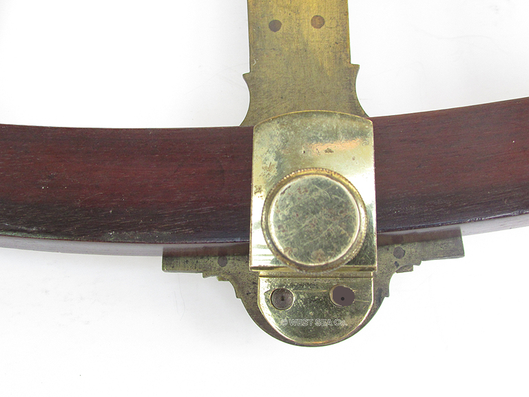3.31 INCLINOMETER. Very finest quality turn-of-the-last-century English steamship’s pilot house clinometer with white enameled dial signed “<HEZZANITH>.” This precision navigational instrument is marked in single degrees of the ship’s heel (roll) from 0 to 50 port and starboard, marked by 10’s. A knurled thumbscrew at the bottom locks the pivoting indicator need in place when the instrument is not in use. The heavy solid brass case is mounted to a lovely laminated backboard having 3 brass brackets. Attaching only the top bracket allows the instrument to rotate and the needle to move. If all 3 brackets are attached it will register as designed on a rolling ship. The brass case is 8 ¾ inches in diameter on the flange. With brackets the entire assembly measures 12 inches across and weighs a hefty 9 pounds. WAS $795 NOW! 295 |