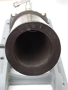 6.47 LIFE SAVING CANNON. Very impressive World War II vintage or earlier cannon used by the Coast Guard (and previously the U.S. Lifesaving Service) to rescue crewmen on vessels stranded on inaccessible shores. Also known as a line throwing cannon, this apparatus was made by the “SCULLER Safety Corp. No. 1561, 122 Broad Street New York” as stamped on the oval brass maker’s plate on top of the breach. This muzzle loader has a solid steel barrel 28 inches long with a barrel diameter of 3 5/8 inches and a bore of 2 ½ inches. The end of the muzzle is stamped with the matching serial number “1561” and the safety inspector’s initials “J.R.H.” The barrel is encased by a thick bronze sleeve surrounding the midsection. It rests on its original cast iron carriage 26 inches long by 12 ½ inches wide. The entire assembly measures 32 inches long and weighs 180 pounds. The breech end of the cannon is attached to the carriage by a thick, round fulcrum which pivots between two brass trunnions. For elevation the carriage is equipped with a “T” bar which fits into any of 3 successively higher holes. The cannon is complete with its rarely found percussion firing system marked, “COSTON SUPPLY CO NEW YORK.” It takes a .32 caliber blank activated by a lanyard which releases a spring-loaded firing pin. Included in this offering is the original wooden ram rod 32 inches long and an authentic lifesaving projectile embossed “CROSBY-LAUGHLIN” and stamped “U.S.L.S.S.” which is 28 inches long and weighs 18 pounds. This cannon is in outstanding, near pristine condition, fully complete and functional* as it was made over 80 years ago. Price Request Ex. Collection Contra Costa Historical Society, Antioch, California. * IMPORTANT! West Sea Company disavows any responsibility for the results of attempting to fire this cannon. Please see the CAUTION disclaimer. |