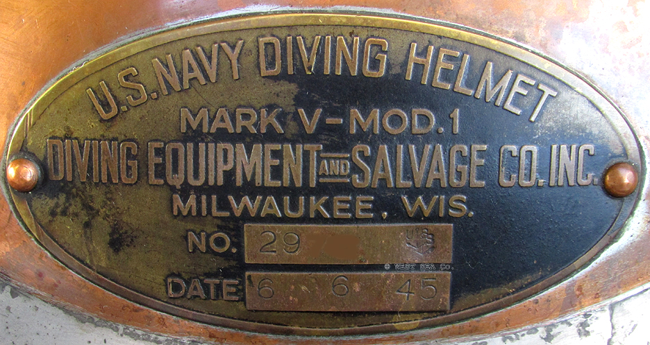 10.63 U.S NAVY MARK V. This is it! The ultimate! Offered here is the very sought after, and by far most collected hard hat diving helmet ever -- an authentic World War II era U.S. Navy Mark V. The maker’s breastplate tag is of brass cast in high relief reading: