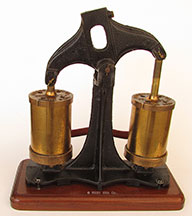 In the catalog of Andrew J. Morse & Son, Inc. Edition 5M, copyrighted in 1937, page 15 through 17 are devoted to this pump and the shallow water diving helmet associated with it. It is described as, "The No. 15 Pump has two cylinders which are single action, and as shown by the illustration, are made in one bronze casting. The discharge valves and the hose outlet are connected by brass pipe, so arranged that the cylinder heads may be easily removed. The results of tests made show that our Shallow Water Outfit is entirely satisfactory provided the depth of the water does not exceed 36 feet." The price of the pump in 1937 exclusive of additional equipment or fittings was listed at $100.