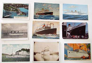17.44 LOT of 9 EARLY PASSENGER SHIPS. A fine grouping of early 1900’s passenger steamship images. They include the PRINCESS VISTORIA, S.S. HOMERIC, United Fruit Company’s Great White Fleet Ship TALAMANCA, S.S BRAZIL, R.M.S. PRINCESS OF JAPAN, S.S. PRESIDENT HARDING, S.S. Matson Line VENTURA, the notable QUEEN MARY in 1951, and the 19th century passenger steamer H.G. STEWART shown in a rare original antique albumen photograph. This is a bargain -- a fraction of their market value! Buy a decent lunch for this price these days. 29 |
