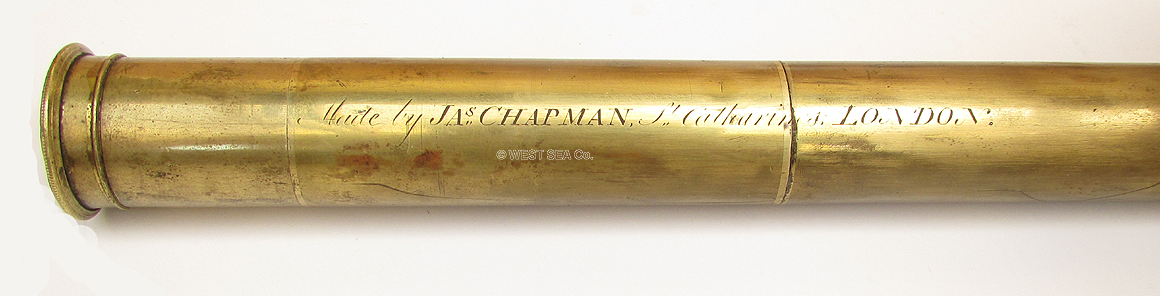 21.66 18th CENTURY TELESCOPE. Authentic late 1700’s telescope made by one of England’s premier opticians of the time, James Chapman. The single brass draw is engraved in fancy script “Made by JAs CHAPMAN, St Catherine’s LONDON.” This early Captain’s spyglass is of established 17th C. form with an 8-sided wooden barrel and single draw tube without a stop. In other words, the draw can be completely pulled out of the barrel! The eyepiece has a very innovative, for its time, pivoting dust cover. The objective has the traditional sliding dust cover. The fact that both are intact and functional is amazing. The single objective lens is of the old pre-achromatic type, being a glass lens held in by a threaded retainer. Speaking to its early manufacture this telescope has a 3 element erecting system rather than the more common 4 found in virtually all telescopes from 1775 onward. At that, each of the elements is a free floating, detachable lens. The telescope provides a very clear, highly magnified upright image with a faint telltale rainbow ring on the periphery of the view indicative of such early optics known as “chromatic aberration.”. It measures 13 ¼ inches closed by 23 inches long extended at infinity. Outstanding, untouched original condition after more than 230 years! This is a true museum piece priced to sell to the discerning collector. WAS $1195 NOW! 795 |